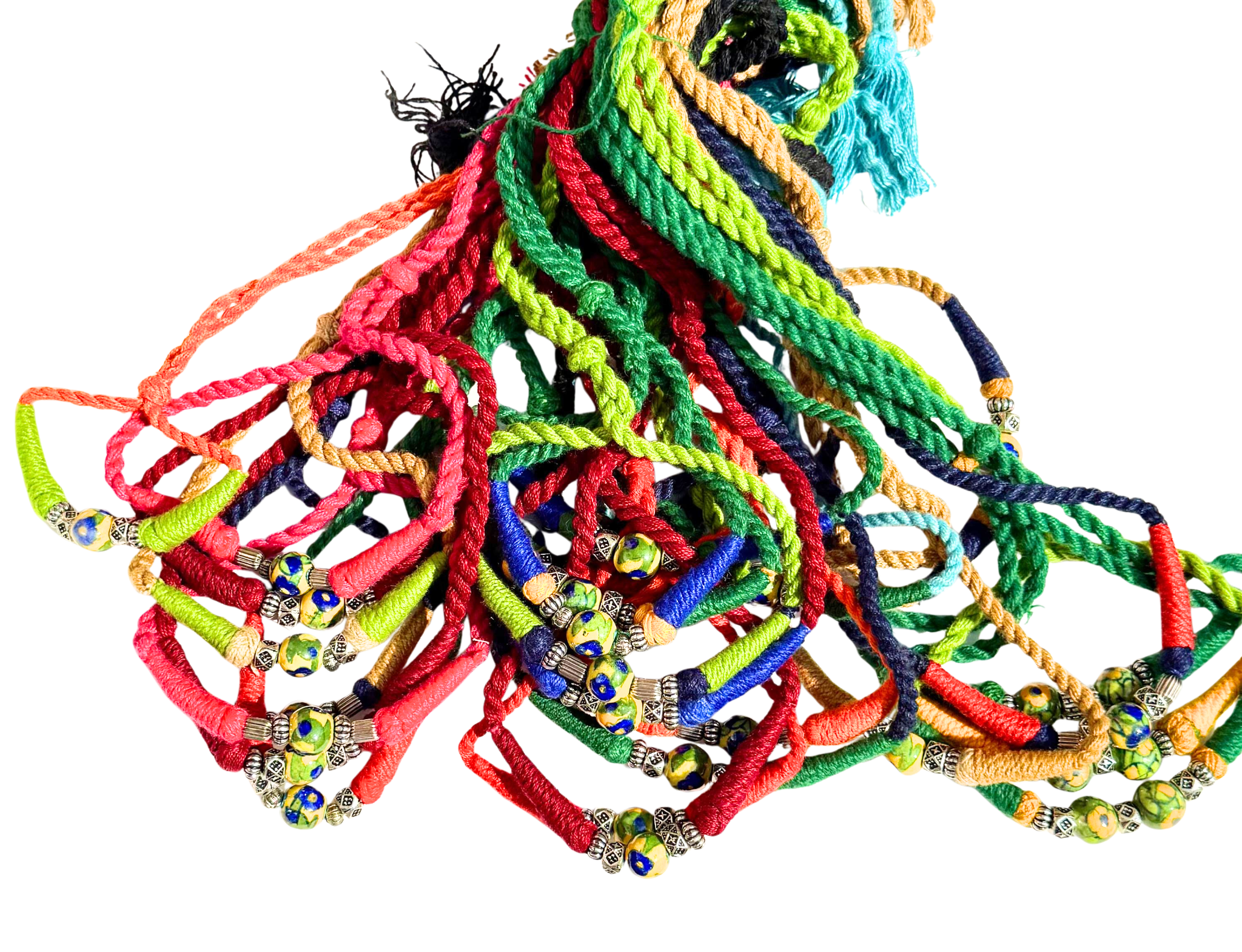 - Accents: silver‑tone trinkets, additional small beads.